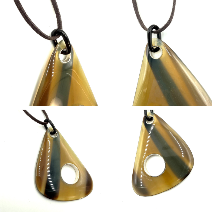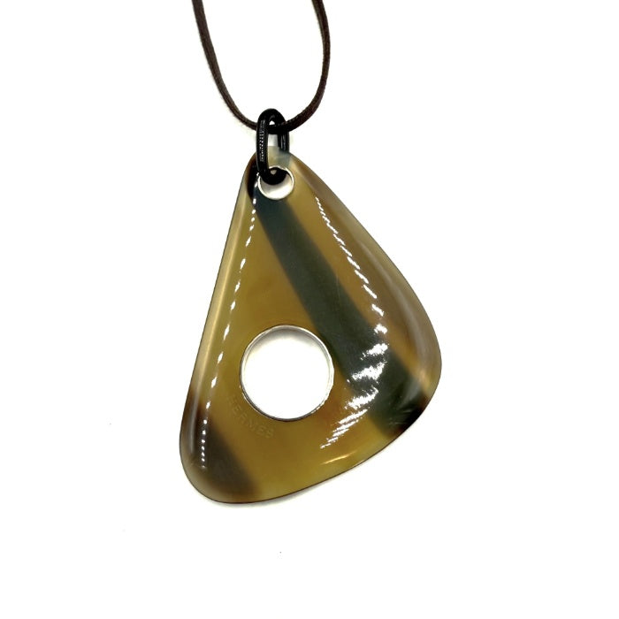 【中古】エルメス HERMES ネックレス バッファローホーン ストライプ 半透明 大きめ ブラウン系 i0225aq018170
