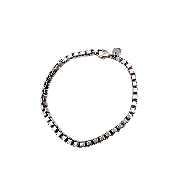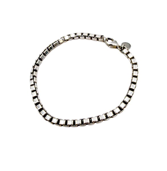 Tiffany & Co.(ティファニー)のベネチアンブレスレットです。 スクエアリンクが連なったシンプルで洗練されたデザインが特徴。 無駄のない美しいフォルムで、どんなスタイルにも馴染む万能アイテムです。 さりげない高級感があり、単品使いはもちろん、 他のアクセサリーとの重ね付けにもおすすめです。 目立つ汚れなく綺麗なお品です。