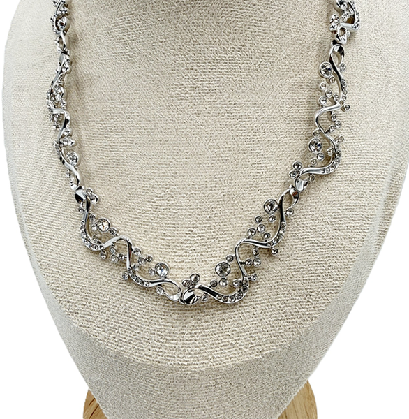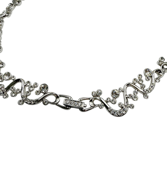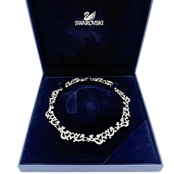 Swarovski(スワロフスキー)のネックレスです。 繊細な曲線デザインにクリスタルがあしらわれた、華やかで上品なアイテム。 首元を明るく見せてくれる存在感のあるデザインで、パーティーシーンや普段使いにもおすすめです。 専用ケース付き 美品です。
