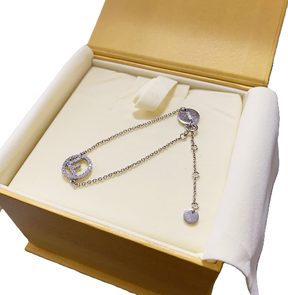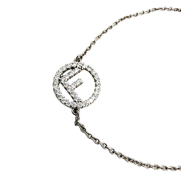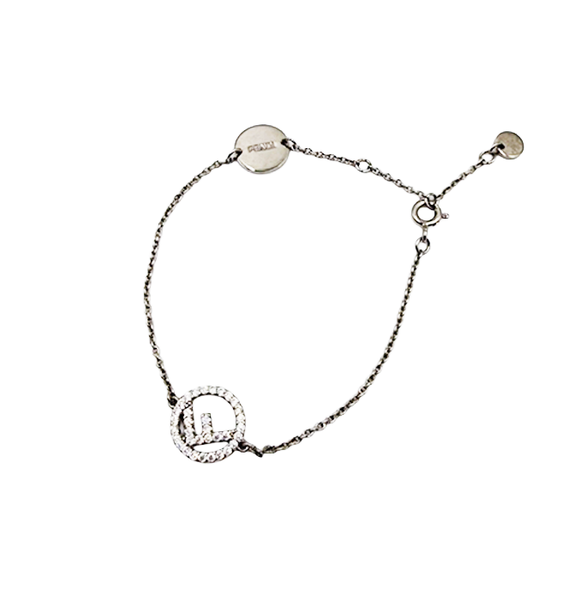 FENDI(フェンディ)のブレスレットです。 人気の「エフイズフェンディ(FFロゴ)」デザイン。 サークルモチーフにラインストーンが施され、シンプルながら華やかな印象です。 細めのチェーンで上品に手元を演出し、普段使いからお出かけまで幅広く活躍します。 箱付き 目立つ汚れなく綺麗なお品です。