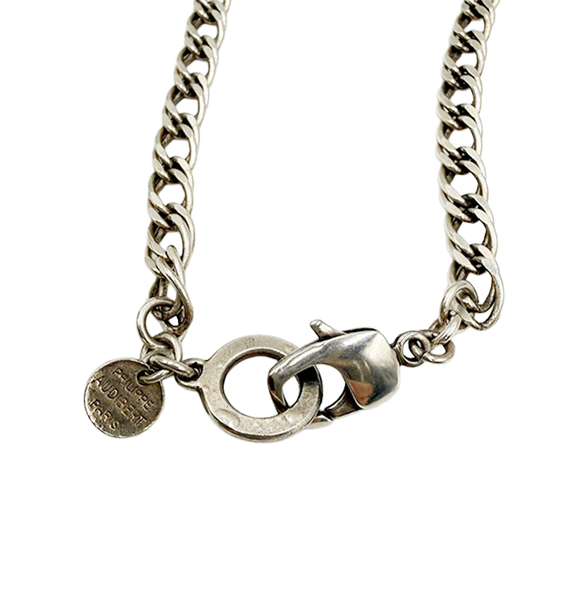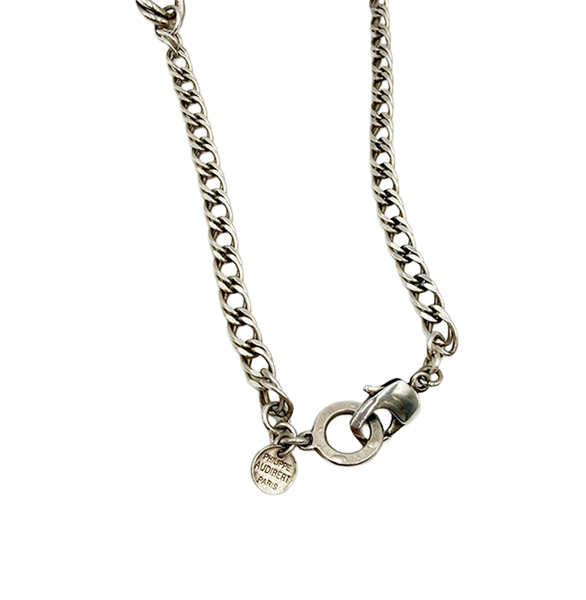 PHILIPPE AUDIBERT(フィリップオーディベール)のネックレスです。 存在感のあるチェーンデザインが特徴で、 シンプルながらもコーディネートの主役になるアイテム。 カジュアルからモード系まで幅広く合わせやすく、 首元に程よいアクセントをプラスしてくれます。 Drawer別注商品。