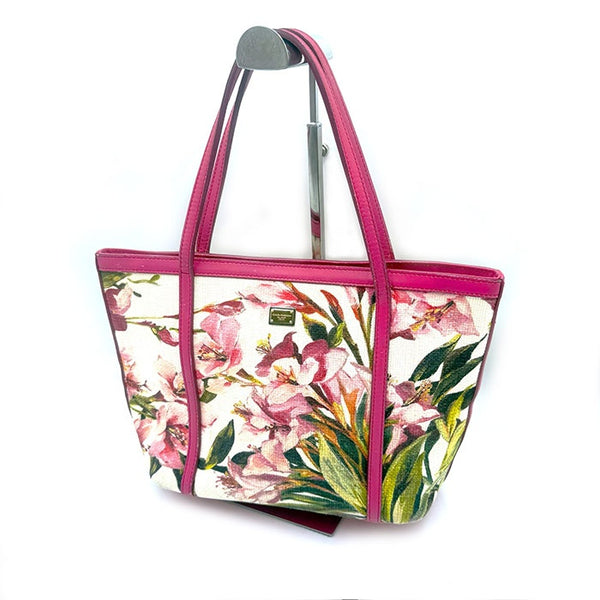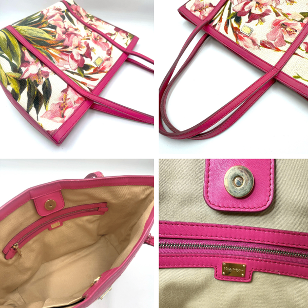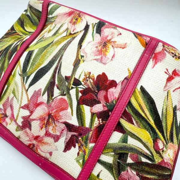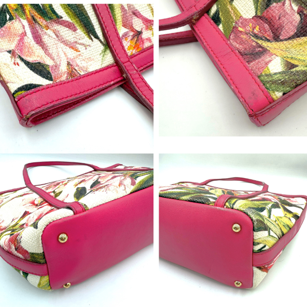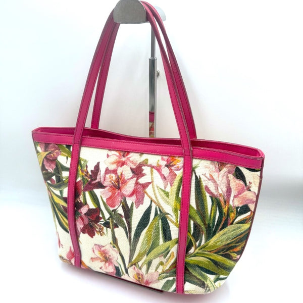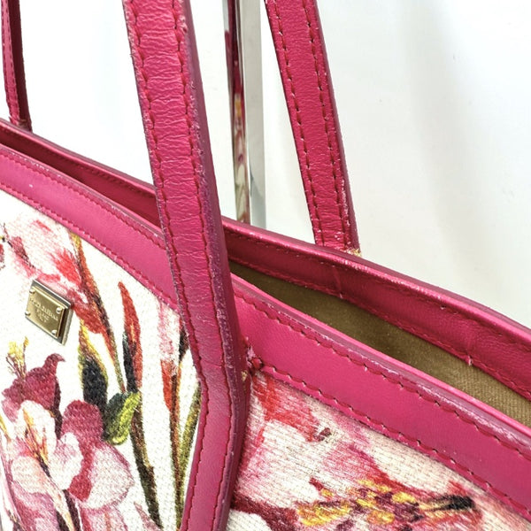 【中古】ドルチェ&ガッバーナ DOLCE&GABBANA ハンドバッグ 花柄 パイピング ビビッドピンク 白系 i0413oq00292
