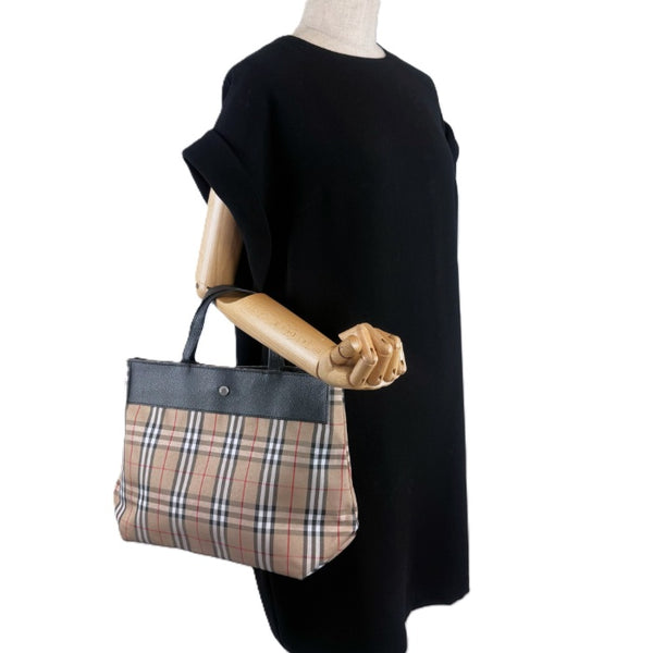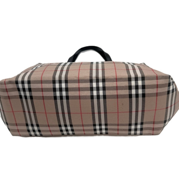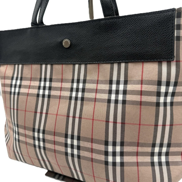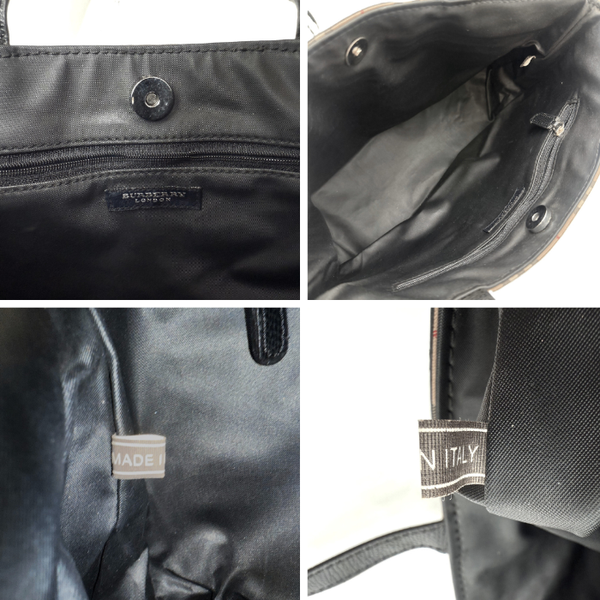 【中古】バーバリー BURBERRY トートバッグ チェック柄 ナイロン レザー バイカラー ベージュ系 ブラック i0627aq00487