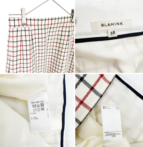 【中古】ブラミンク BLAMINK チェックスカート ウール100% サイズ38 未使用 i1031h01472