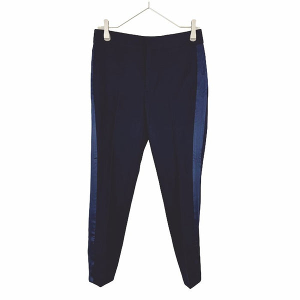 【中古】Drawer ドゥロワー ラインパンツ ウール フラノライン ネイビー i1222y00716
