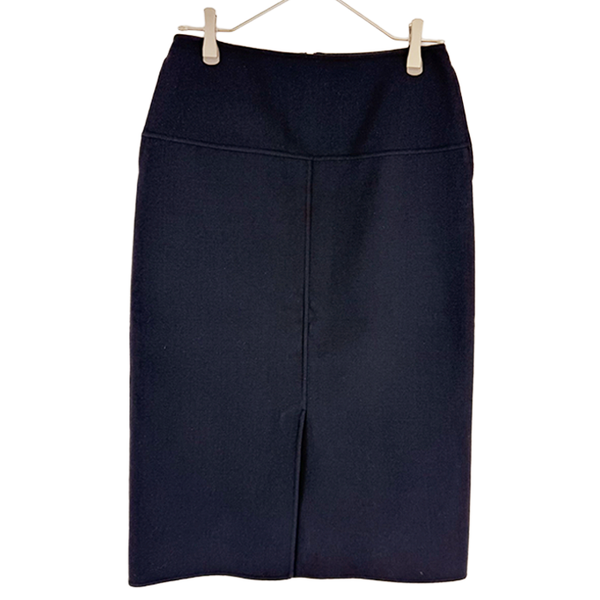 フロントスリット入りで足さばきが良く、女性らしさと動きやすさを両立。 後ろファスナー仕様ですっきりとしたウエストラインに。 オフィスからきれいめなお出かけまで幅広く活躍する一着です。 目立つ汚れもなく綺麗なお品です。