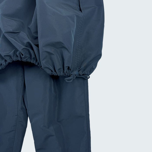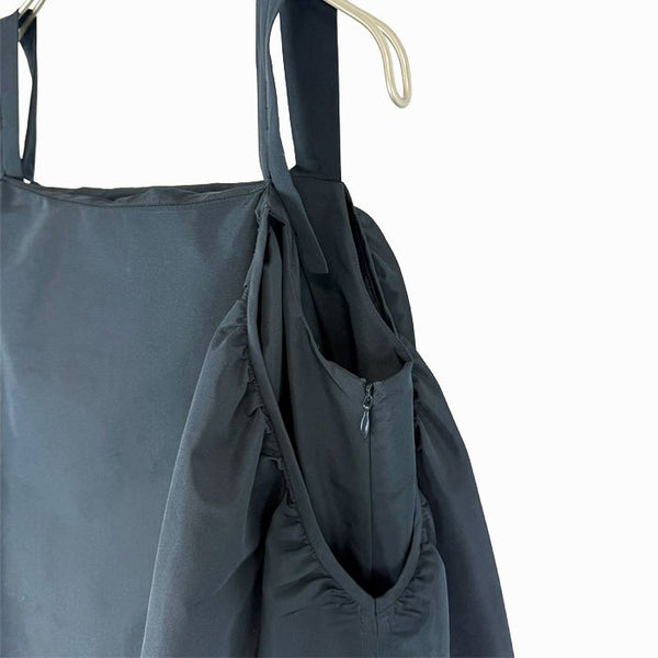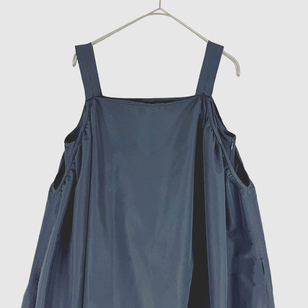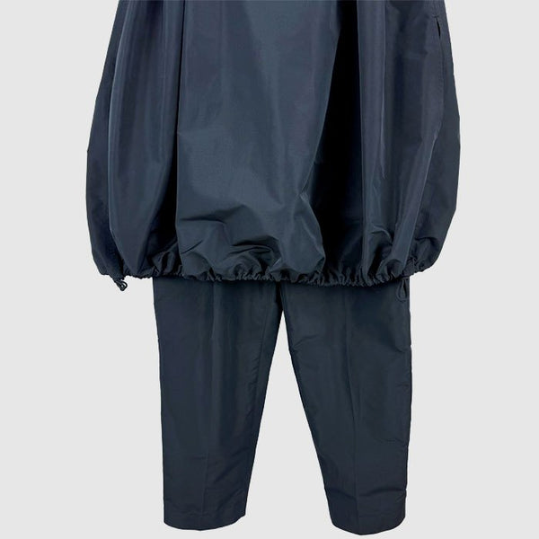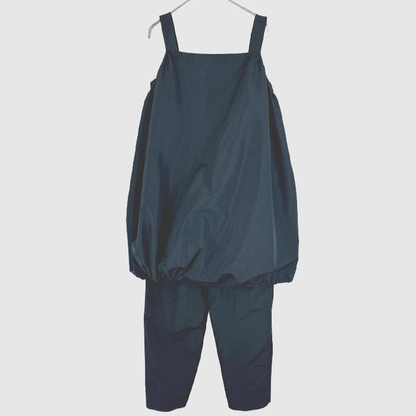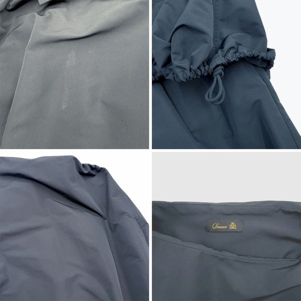 Drawer(ドゥロワー)のオールインワンです。 上品なネイビーカラーに、ふんわりとした立体感のあるバルーンシルエットが特徴。 ウエスト部分にはドローストリングが施されており、シルエットの調整が可能です。 シミ、使用感が見られますがまだまだご使用いただけるお品物です。