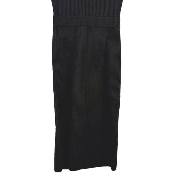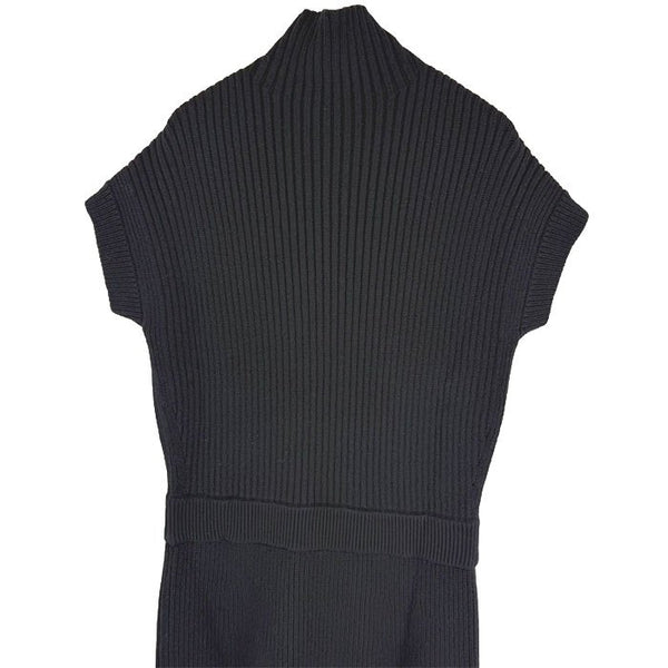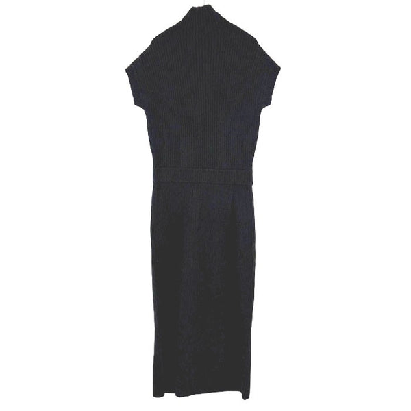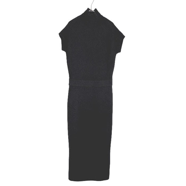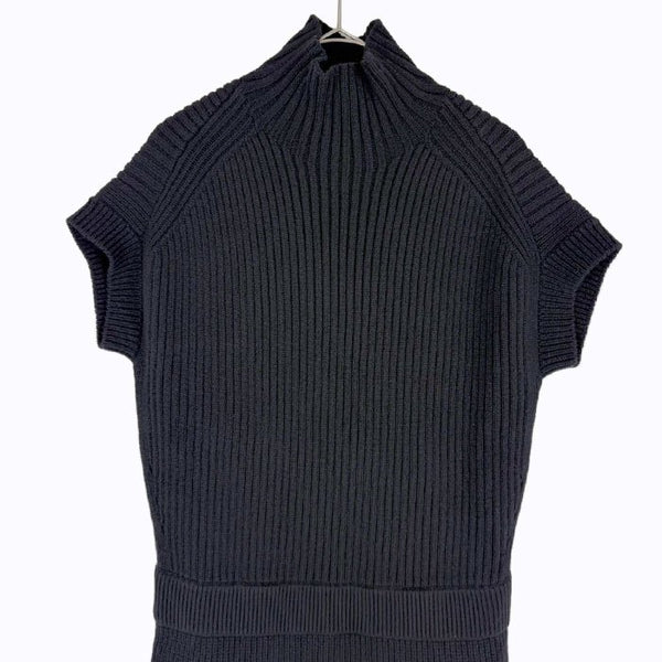 【中古】Drawer ドゥロワー ニットワンピース ブラック 半袖 ハイネック リブニット ウール カシミヤ混 i1222h00162
