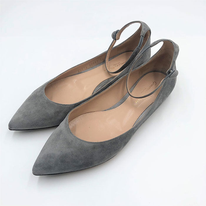 【中古】ジャンヴィトロッシ Gianvito Rossi フラットパンプス アンクルストラップ エナメル ポインテッドトゥ ブラック 黒 h1125aq00912