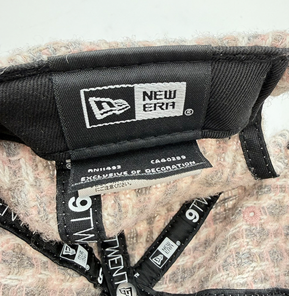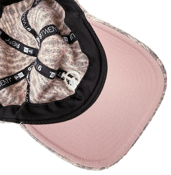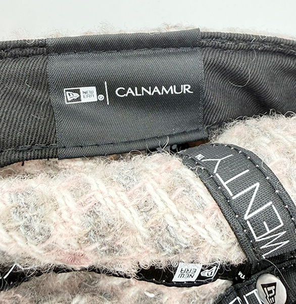 NEW ERAとCALNAMURのコラボキャップです。 ふんわり起毛したツイード素材で、淡いピンク×グレーのミックスカラーがとても上品。秋冬コーデの仕上げにそっと魔法をのせてくれるような可愛さです。 フロントにはワンポイント刺繍、サイドにはNEW ERAロゴ、内側は9TWENTY仕様で軽くてフィット感も◎。 後ろはマジックテープでサイズ調整ができるので、幅広い方にお使いいただけます。 使用感はありますが、まだまだ気持ちよく着用していただけるお品です。