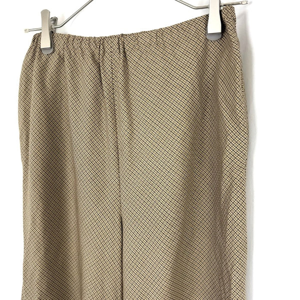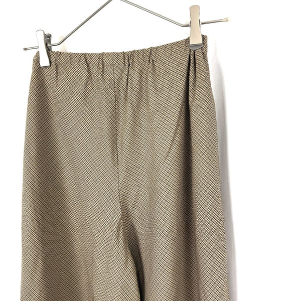 ロングスカートのようなシルエットにも見えるワイドパンツです。細かいチェック柄で上品な印象。 薄手でウエストはゴムです。全体的に状態の良い綺麗な綺麗なお品物です。