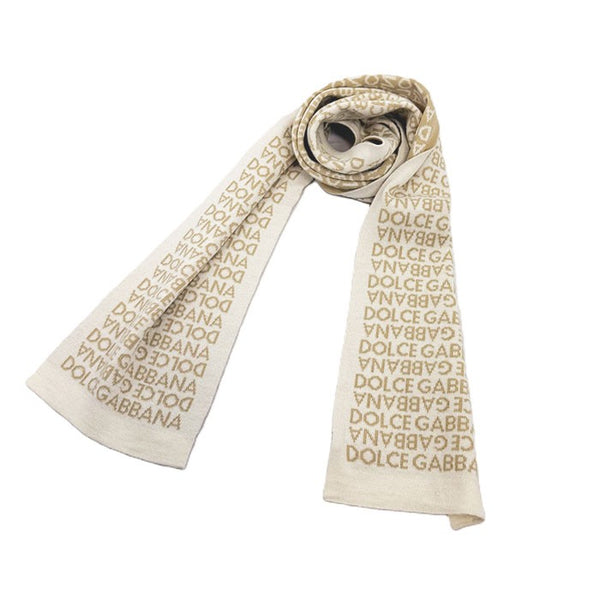 【中古】Dolce & Gabbana ドルチェ&ガッバーナ マフラー ロゴ 総柄 ベージュ系 i0328aq01418