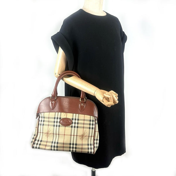 【中古】バーバリー BURBERRY ハンドバッグ ノバチェック 定番チェック柄 バイカラー ベージュ系 ブラウン i0413oq001149