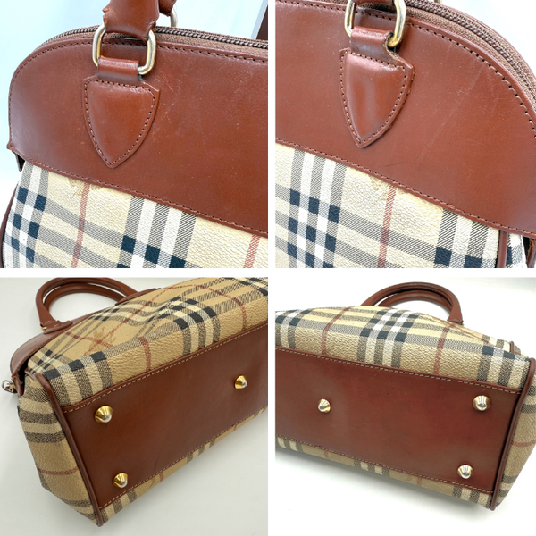 定番チェック柄にブラウンレザーの組み合わせが可愛いハンドバッグです。 角擦れ、傷、型崩れ、ハンドル付け根に劣化、内側にうっすら汚れがあります。 目立つ汚れや壊れはなくまだまだご使用いただけるお品物です。