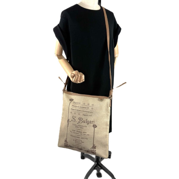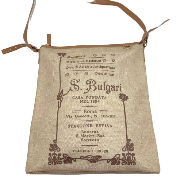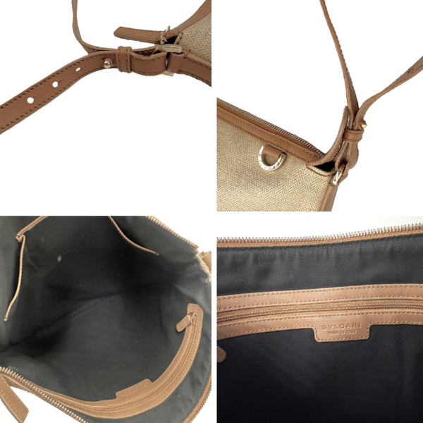 【中古】ブルガリ BVLGARI ショルダーバッグ コレツィオーネ ヘリンボーン 縦長 ナチュラル ベージュ系 i0601oq00957