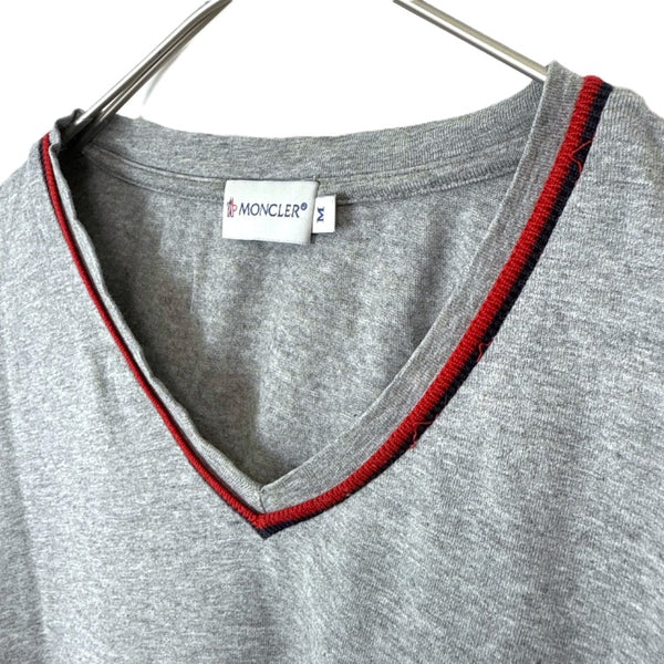 【中古】モンクレール MONCLER VネックTシャツ ライン ロゴワッペン カジュアル 杢グレー i0627aq01318