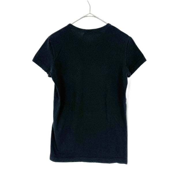 黒地に白ロゴプリントが映えるコットンTシャツです。 使用感があり、首元色褪せ、縫い目に少々毛玉があります。気になる汚れや傷みはなく、まだまだご着用いただけるお品物です。