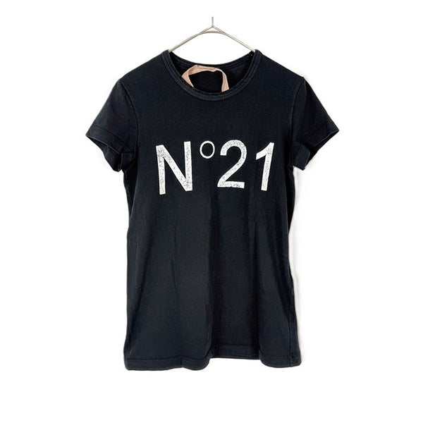 【中古】ヌメロヴェントゥーノ N°21 Tシャツ ロゴプリント コットン シンプル ブラック 黒 i0630h0056