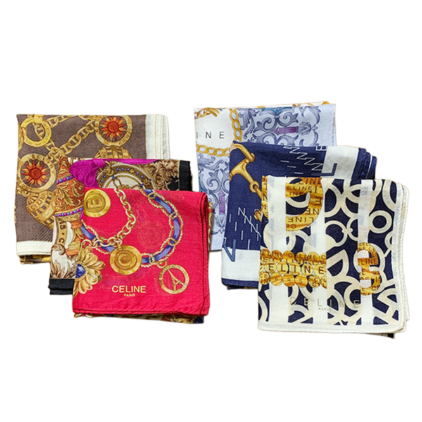 【中古】CELINE セリーヌ ハンカチ 6点 セット シルク 綿混 総柄 ロゴ i0728tq0071