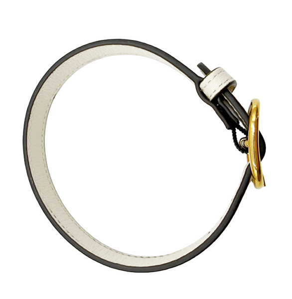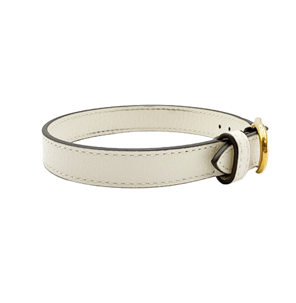 柔らかなホワイトレザーに、丸みのあるゴールド金具を合わせたGUCCIのペット用カラー。 上質な革ならではのなめらかな質感と軽さが魅力で、小型犬に特に使いやすいサイズ感です。 使用感少なく綺麗なお品です。