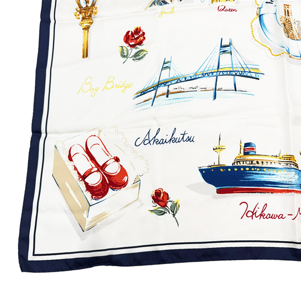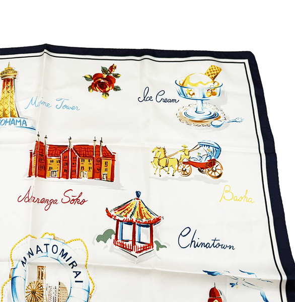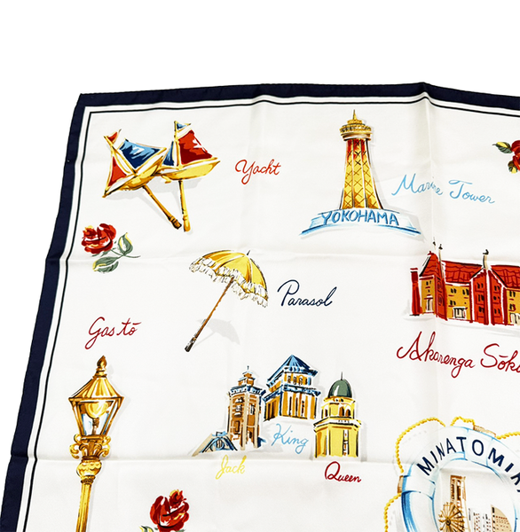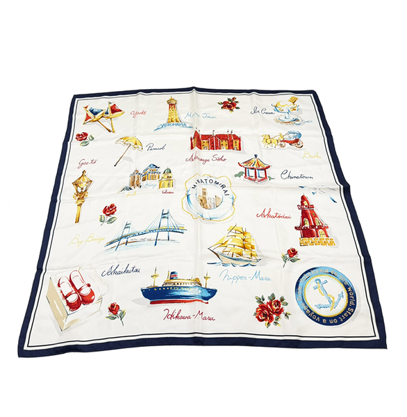 【中古】Marca Yokohama マルカヨコハマ スカーフ 横浜モチーフ シルク 絹 正方形 i1013tq00410