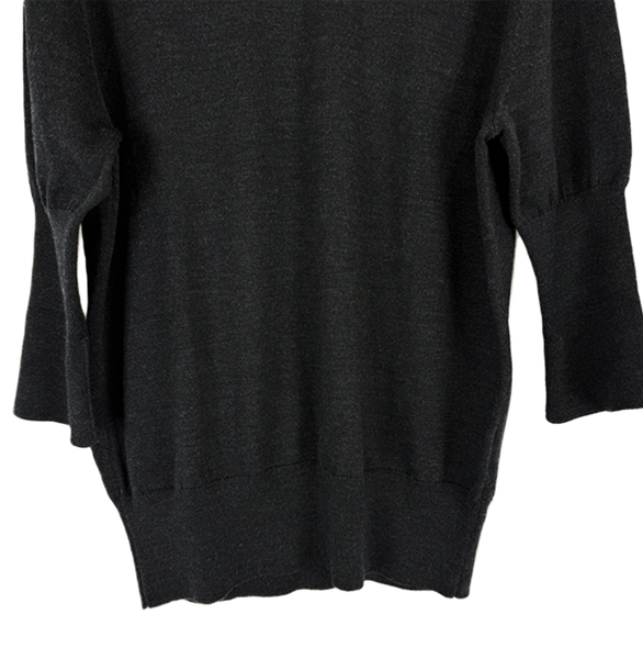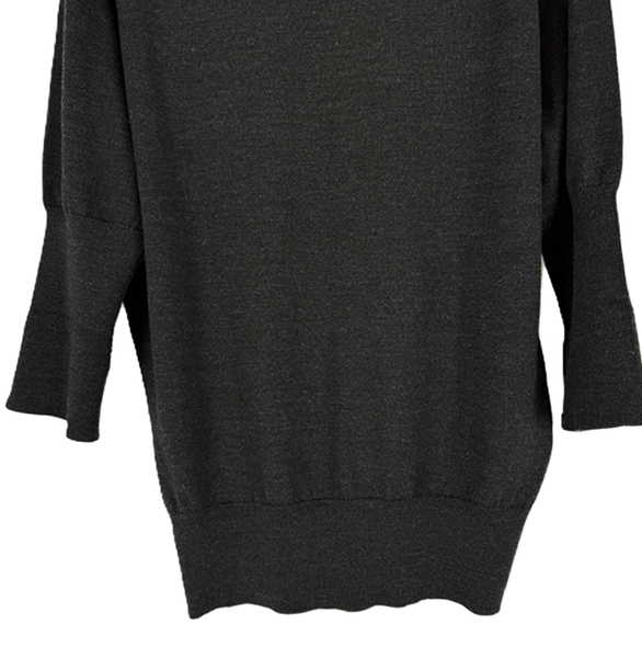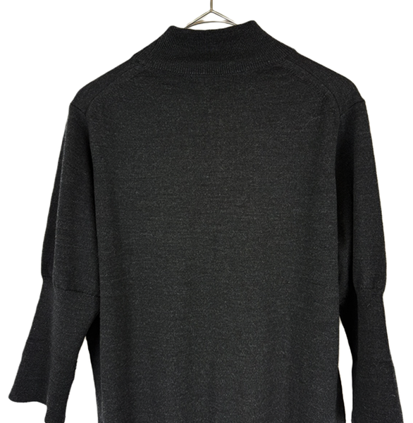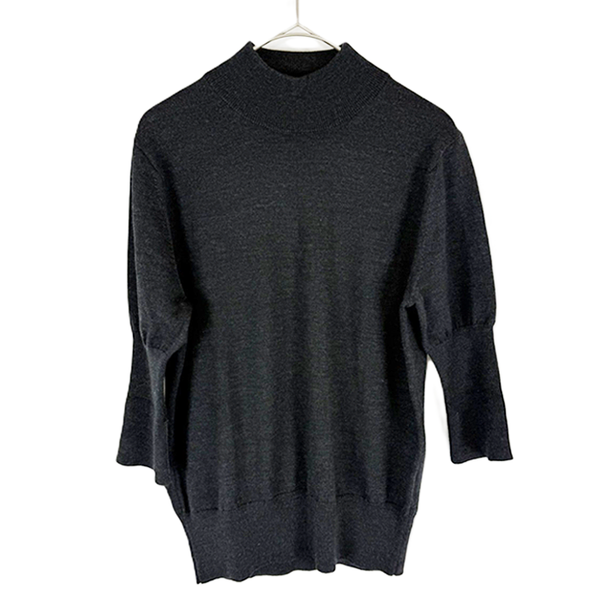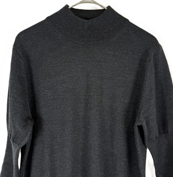 上質なウール100%素材を使用した、LOEFFの長袖ニット。 程よく高さのあるネックデザインとシンプルなシルエットで、1枚でもレイヤードでも活躍します。 落ち着いたダークグレー系カラーで、オンオフ問わず着用いただける大人の一着です。 未使用品です。