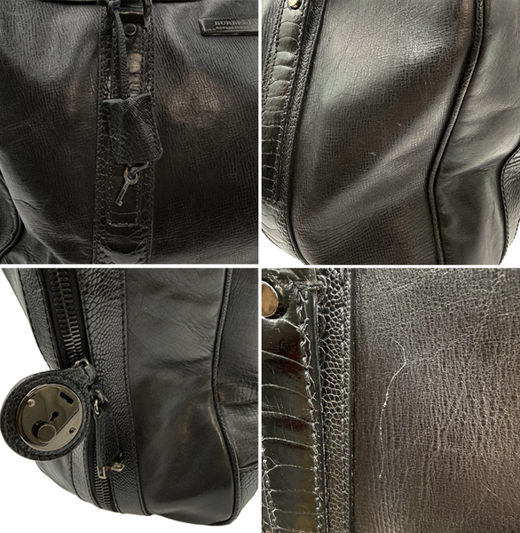 BURBERRY(バーバリー)のレザーボストンバッグです。 上質なブラックレザーを使用した、重厚感のあるデザインで、 ビジネスから旅行まで幅広いシーンで活躍します。 収納力のあるサイズ感で、 出張や1〜2泊程度の旅行にもおすすめ。 シンプルながらもブランドらしい存在感のあるバッグです。 全体的に使用感はありますが、 大きなダメージはなく、まだまだご使用いただける状態です。