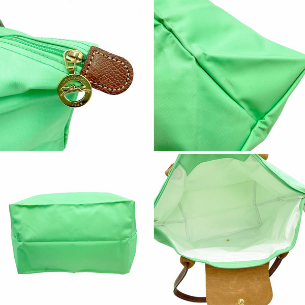 【中古】Longchamp ロンシャン トートバッグ グリーン ナイロン×レザー バッグ i1029pq0315