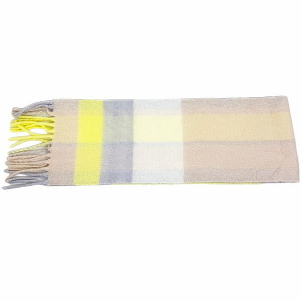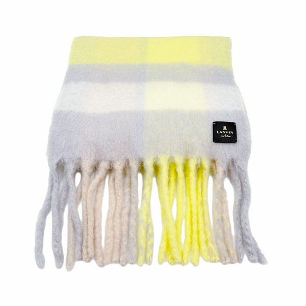 【中古】LANVIN en Bleu ランバンオンブルー マフラー チェック グラデーション イエロー グレー i1124tq01220
