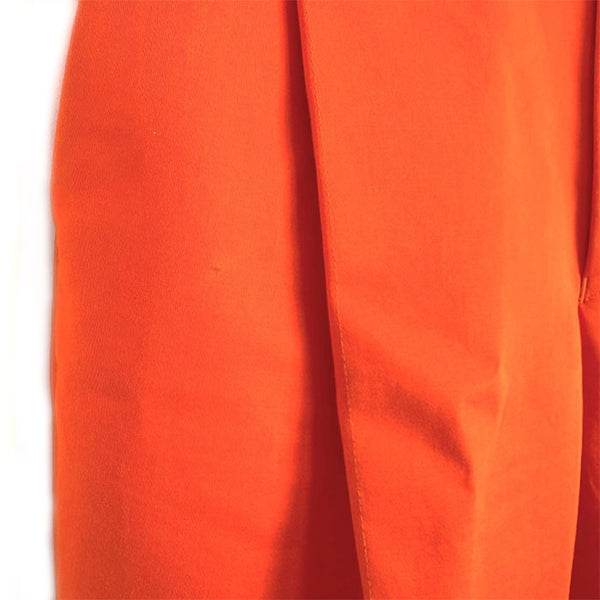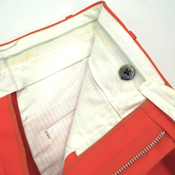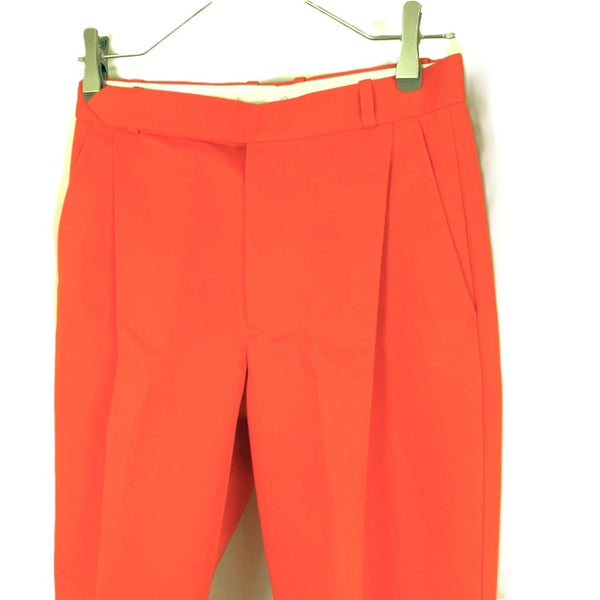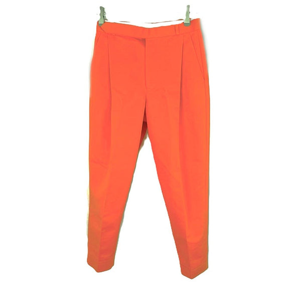 鮮やかなオレンジカラーのテーパードタックパンツです。気持ちも明るくなる綺麗な色味です。 右ポケット付近に点汚れ、毛羽立ち、擦れが少々ありますが、状態は良く全体的に綺麗なお品物です。