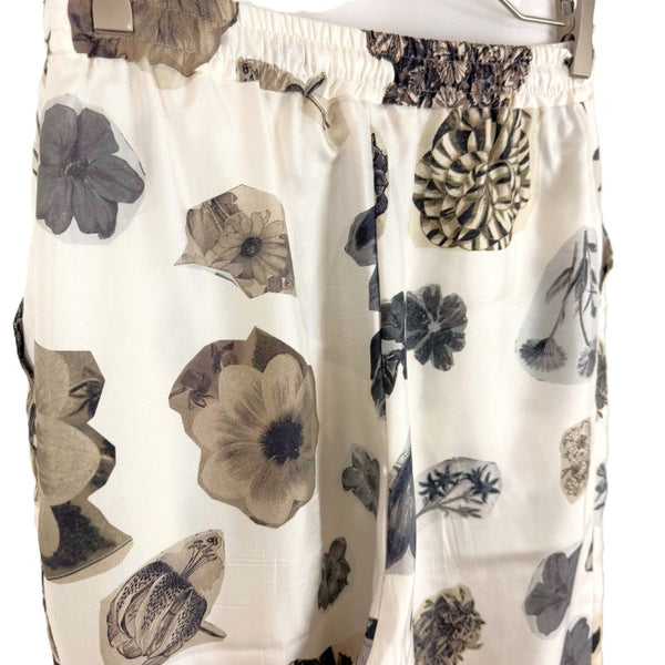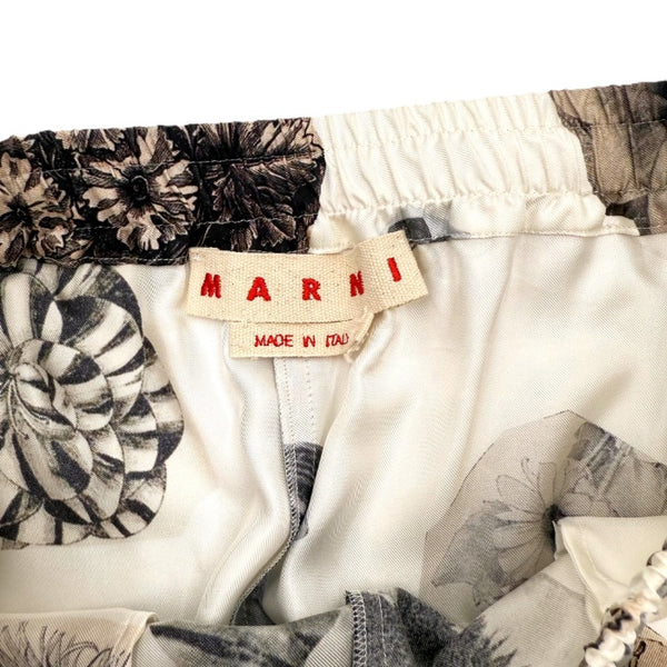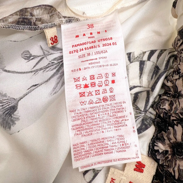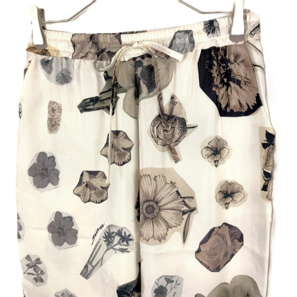 【中古】マルニ MARNI シルクカジュアルパンツ フラワープリント 花柄 オフホワイト ブラウン系 i0619a00260