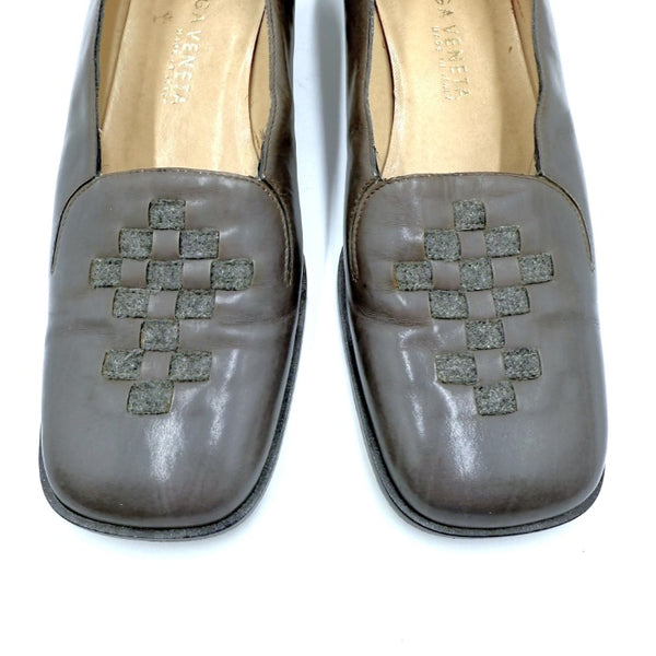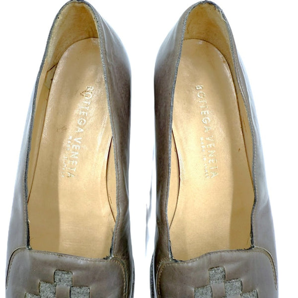 【中古】ボッテガヴェネタ BOTTEGA VENETA パンプス スクエアトゥ チャンキーヒール グレー系 i0724lq01911