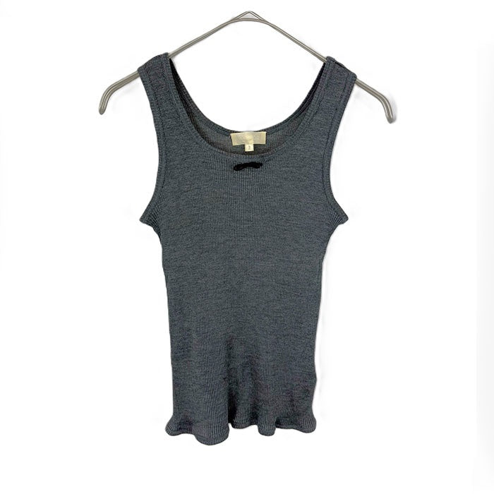 【中古】ドゥロワー Drawer 細リブタンクトップ 胸元リボン シルク 薄手 透け感 チャコールグレー i0623k0010