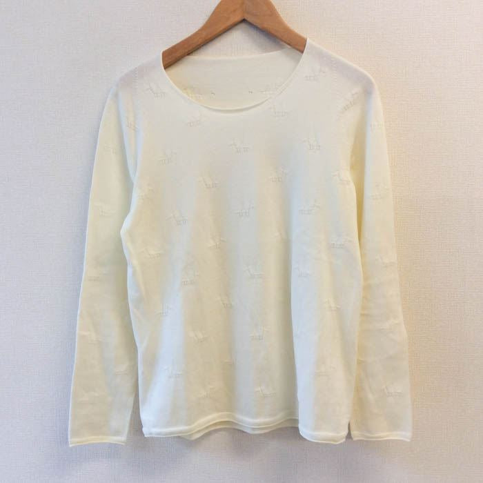 【中古】ユリパーク YURI PARK 細ボーダーニット 七分袖 レ・アーリ ボートネック 薄手 コットンニット ネイビー ホワイト h1028u01123