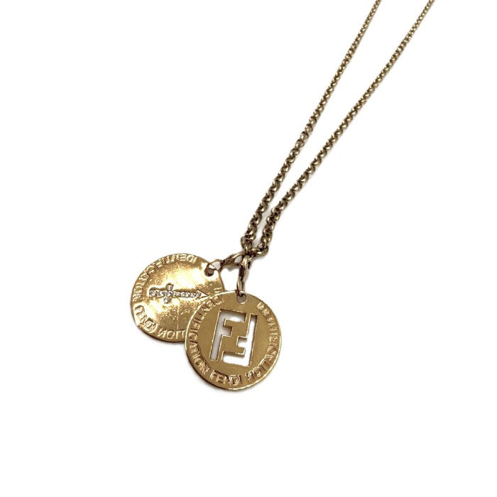 【中古】フェンディ FENDI ネックレス コイン 2枚 FFロゴ ラインストーン ゴールド クリスタル i0724lq00544