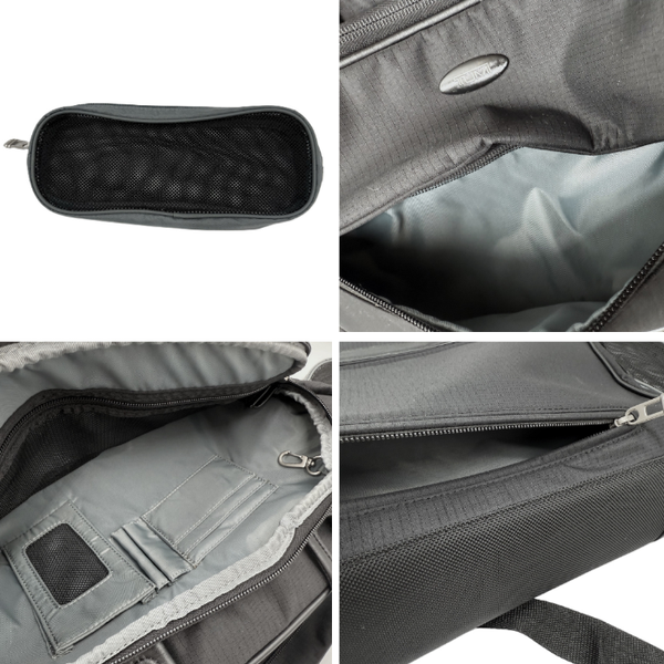 外側に収納ポケットが多く、内側も使いやすい仕切りが多数、ポーチも付いた万能ビジネスバッグです。 ショルダーベルトは社外品です。角剥げが若干ありますが、その他気になる汚れや傷みはなく、全体的に綺麗なお品物です。