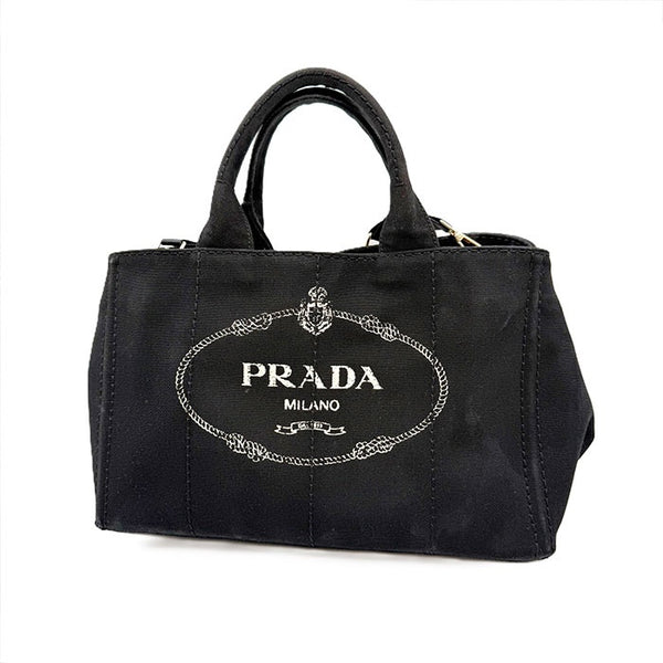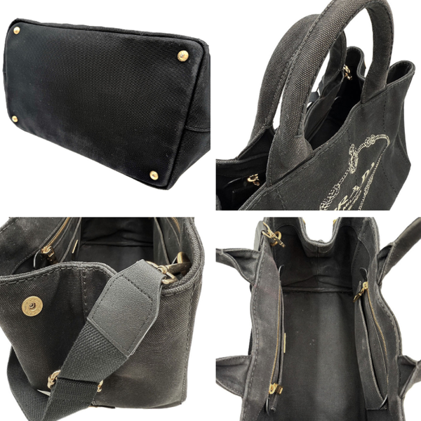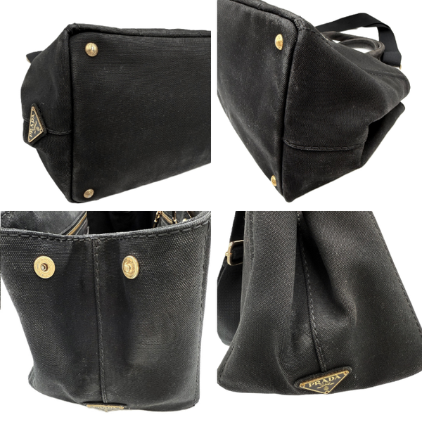 【中古】プラダ PRADA カナパ トートバッグ 大きめ ロゴ キャンバス ブラック 黒 i0606aq002190