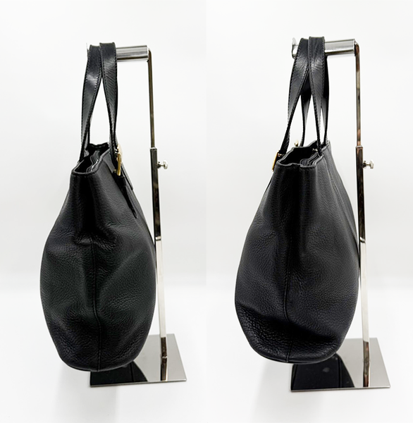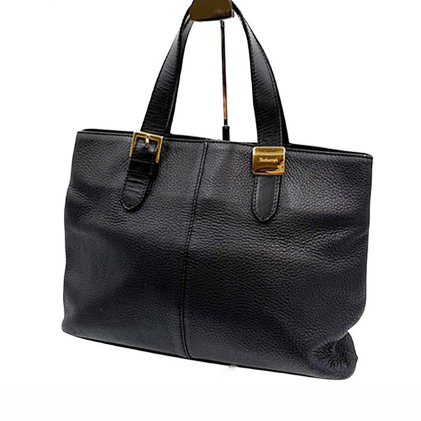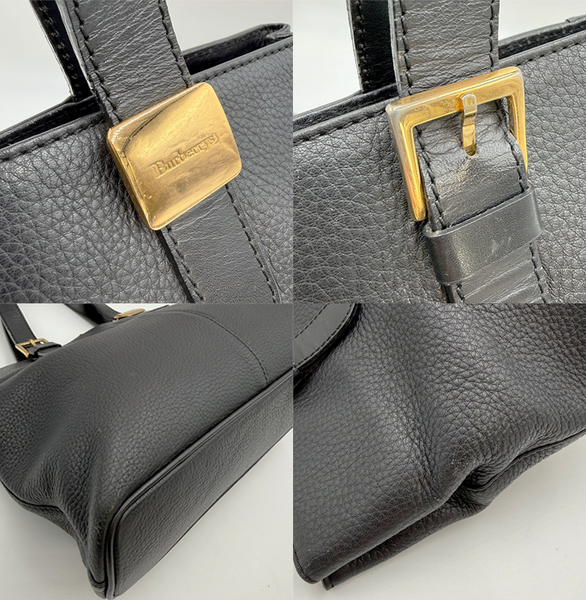 BURBERRY(バーバリー)のレザートートバッグです。 シンプルで上品なブラックカラーに、ゴールド金具が映える高級感のあるデザイン。 しっかりとしたレザー素材で、通勤・通学から普段使いまで幅広く活躍します。 マチがあり収納力もあるため、実用性の高いトートバッグです。 金具に傷や変色があります。 全体的に使用感はございますが、まだまだご使用いただけるお品です。