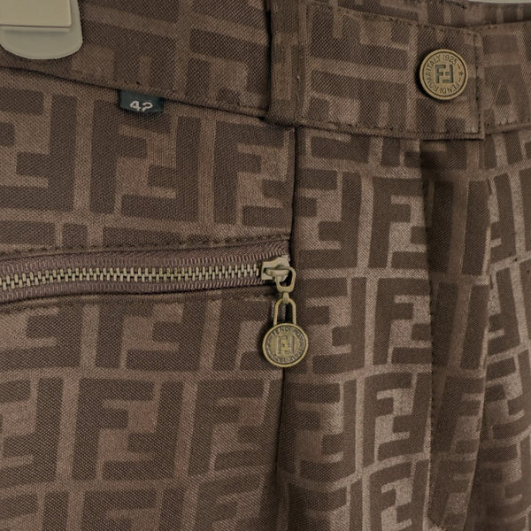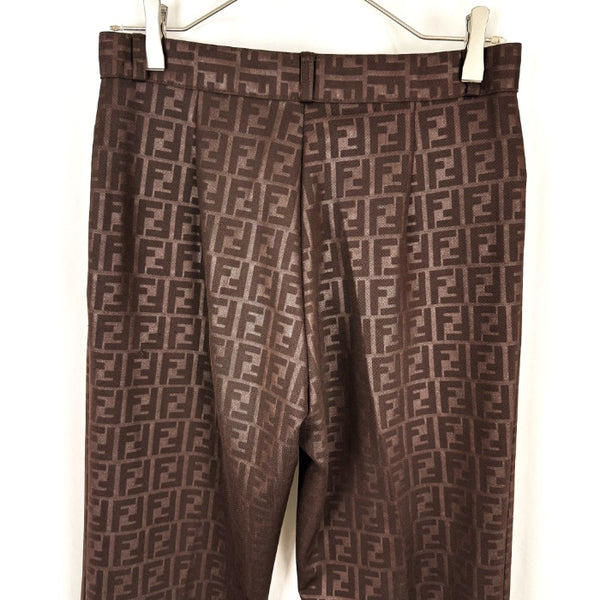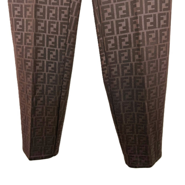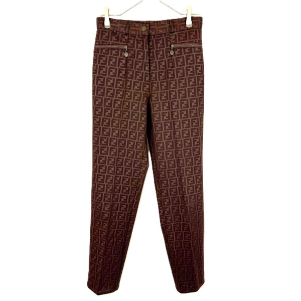 【中古】フェンディ FENDI テーパードパンツ ズッカ柄 ストレッチ 光沢 ダークブラウン系 i0717lq007121
