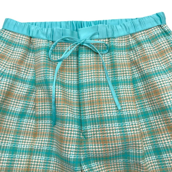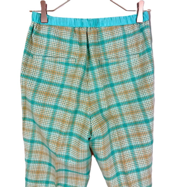 【中古】ドゥロワー Drawer グレンチェックドロストパンツ コットン シルク エメラルドグリーン ベージュ i0805k00216