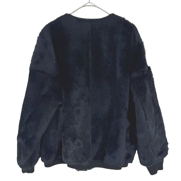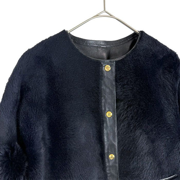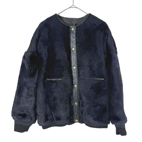 【中古】Drawer ドゥロワー ファージャケット ネイビー 36 レザー切替 羊革 牛革 i1215h002156
