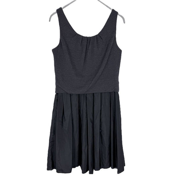 ニットとシルクの異素材の切替えが美しく、立体感のあるシルエットを生み出します。 ブラックのワントーンながらも質感のコントラストが効いた、エレガントで華やかな印象の一枚。 結婚式や二次会、パーティーなどのフォーマルシーンはもちろん、 ジャケットを合わせてお仕事シーンにもおすすめです。 毛玉、毛羽立ちがございますがまだまだご使用いただけるお品物です。