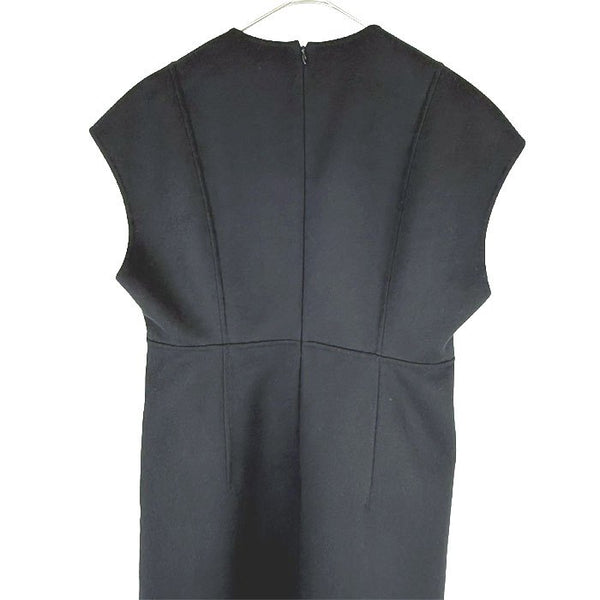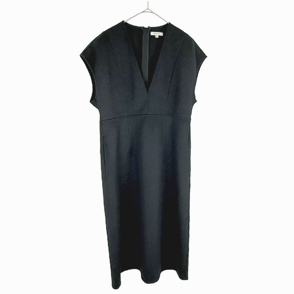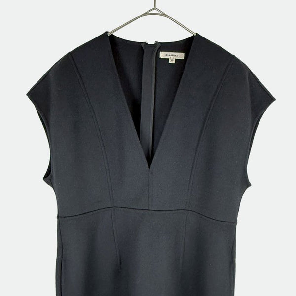 BLAMINK(ブラミンク)のノースリーブワンピースです。 深めのVネックと縦の切り替えラインが美しく、シンプルながらも洗練された一着。 上質なウールとカシミヤ混素材を使用し、なめらかな肌触りと上品な落ち感が魅力です。 一枚ではもちろん、インナーやジャケットを合わせたレイヤードスタイルもおすすめ。 フォーマルからきれいめカジュアルまで幅広く活躍します。 未使用品のため、コンディションも非常に良好です。