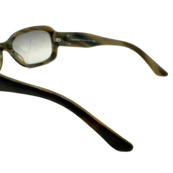 サイドのロゴマークが印象的なおしゃれなべっ甲風サングラスです。ケース無し。 使用感があり、フレーム、レンズに細かい傷があります。壊れはなくまだまだご使用いただけるお品物です。