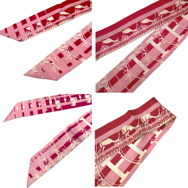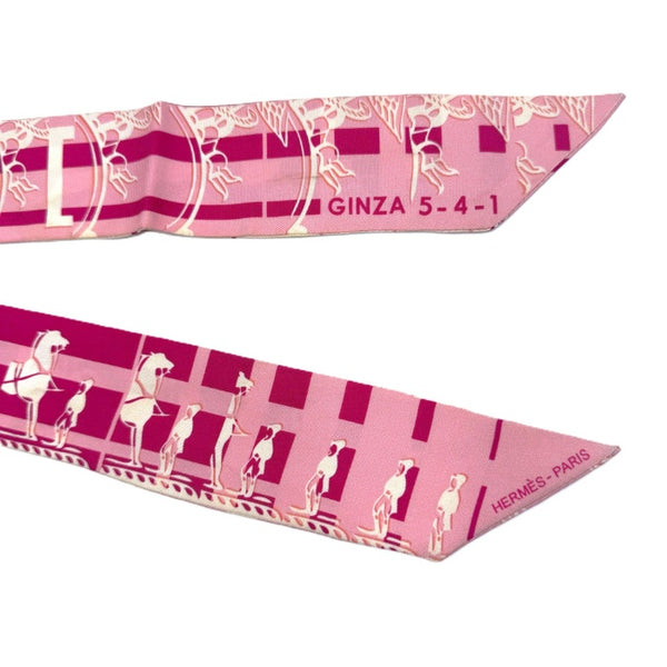 【中古】エルメス HERMES ツイリー スカーフ スリム フォーブル24 銀座店10周年記念限定 ピンク系 i0606aq00690