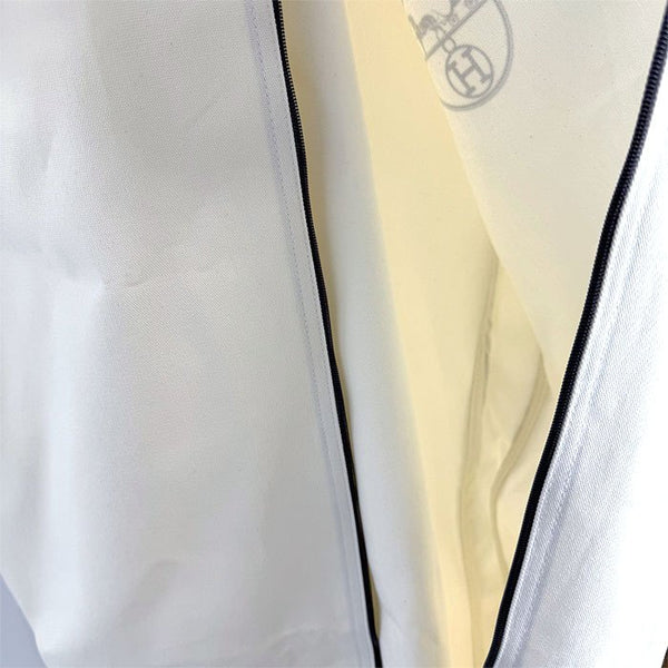 HERMES(エルメス)のガーメントケースです。上質なキャンバス生地を使用したシンプルなデザインで、 ブラックのトリムがさりげなく高級感を引き立てています。 軽く扱いやすい素材感で、大切な衣類の保管や持ち運びに便利なアイテムです。 目立つ汚れなく綺麗なお品です。
