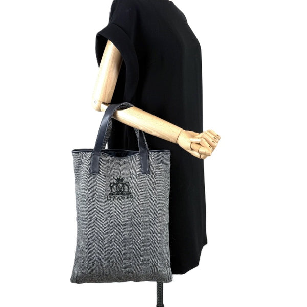 Drawerノベルティトートバッグです。ウール素材のヘリンボーン生地。 落ち着いた印象のデザインで秋冬におすすめです。折れ跡がありますが、 使用感や気になる汚れはなく全体的に状態の良い綺麗なお品物です。