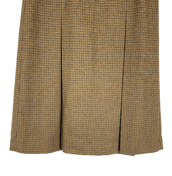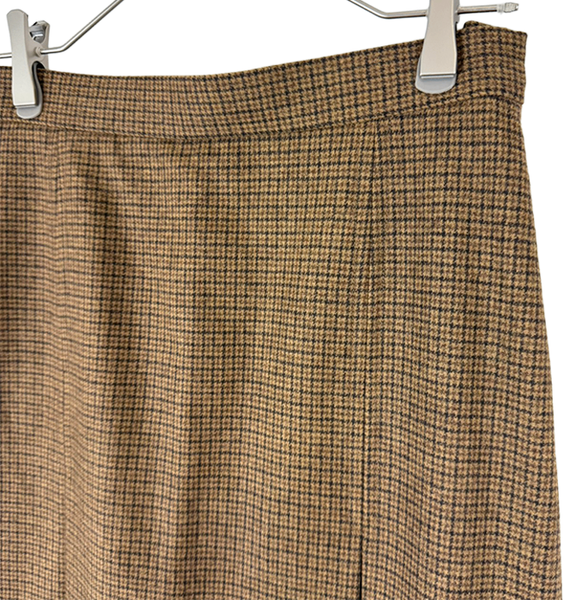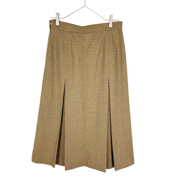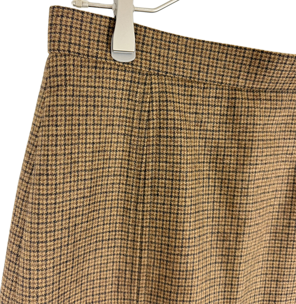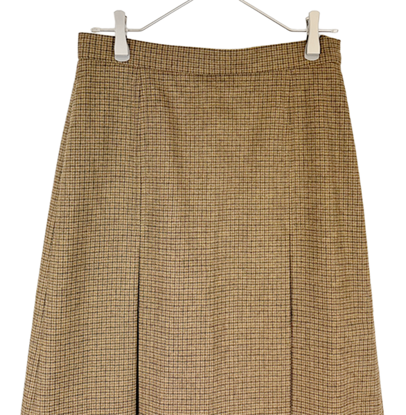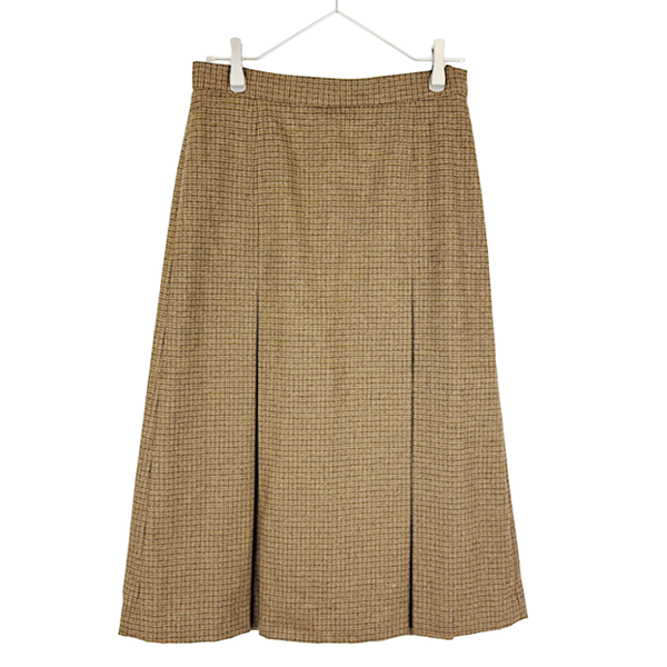 ブラウン系チェックの上品なスカート。 タック入りでラインがきれいに見え、シンプルなトップス と合わせやすいデザインです。 目立つ汚れもなく綺麗なお品です。