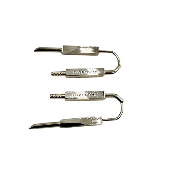 GIVENCHY(ジバンシィ)のロゴ入りUロックモチーフピアスです。 シャープでエッジの効いたデザインが特徴で、シンプルながら存在感のあるアイテム。 ユニセックスでお使いいただけ、ストリートからモードスタイルまで幅広く活躍します。 中古品のため、金属部分に細かなスレや小キズはございますが、 着用時に大きく目立つダメージはなく、まだまだご使用いただけるコンディションです。