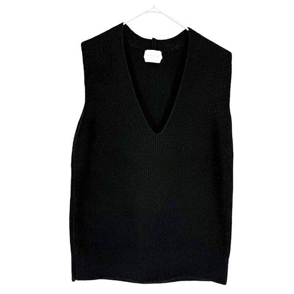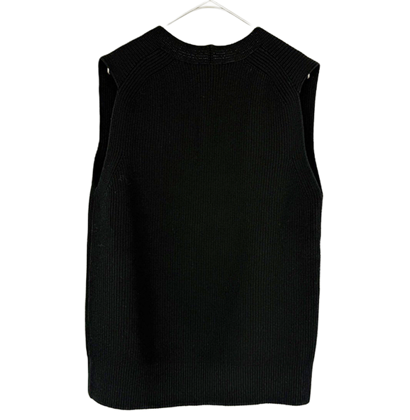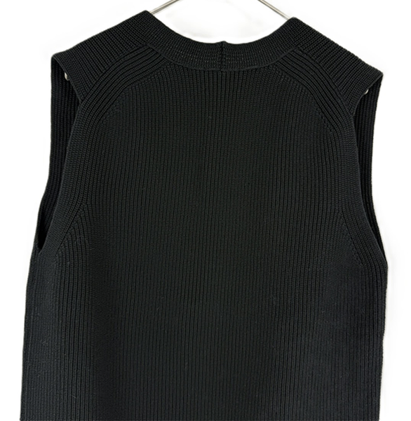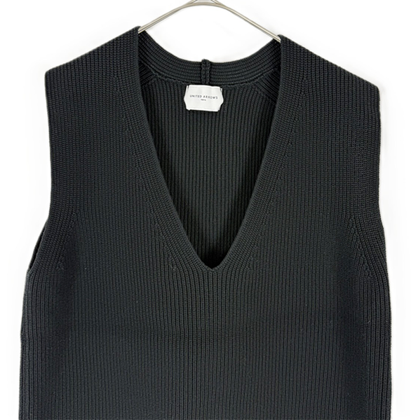 UNITED ARROWSのVネックニットベストです。 シンプルなブラックカラーで、シャツやカットソーとのレイヤードスタイルに活躍。 程よい厚みのニット素材で、季節の変わり目にも取り入れやすい一着です。